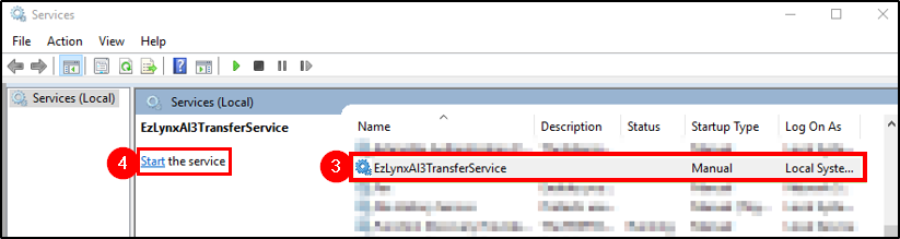 2. In Services, locate EzLynxAL3TransferService and click on it.