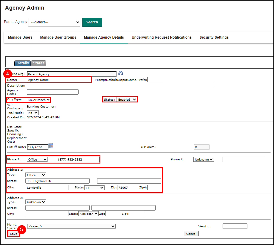 4. In the following fields, input the required information for the Member Agency you are creating: