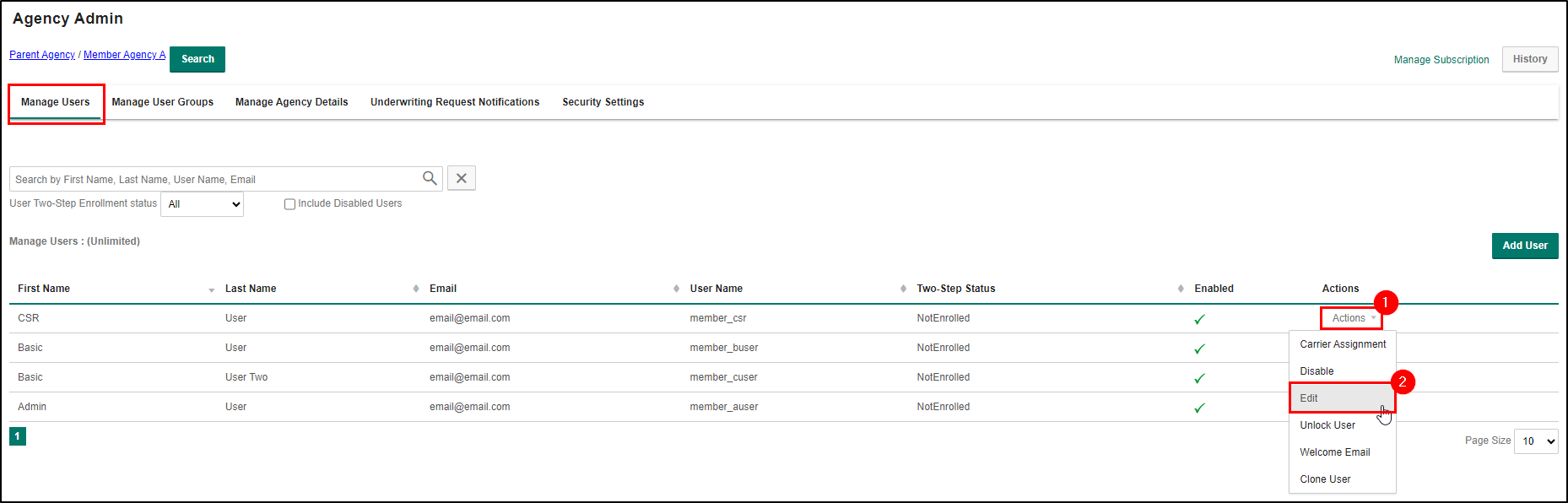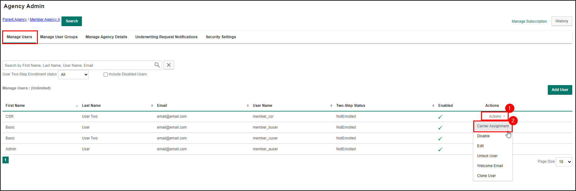 Now that you have created the users for the member agency, the next step is to give them carrier access. Check out the Add/Remove Carrier Access section of this article to learn how!