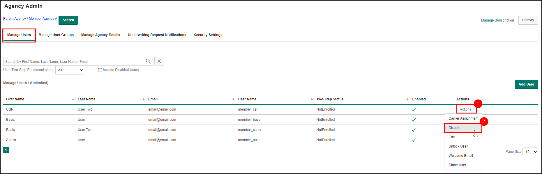 - Disable a Member Agency