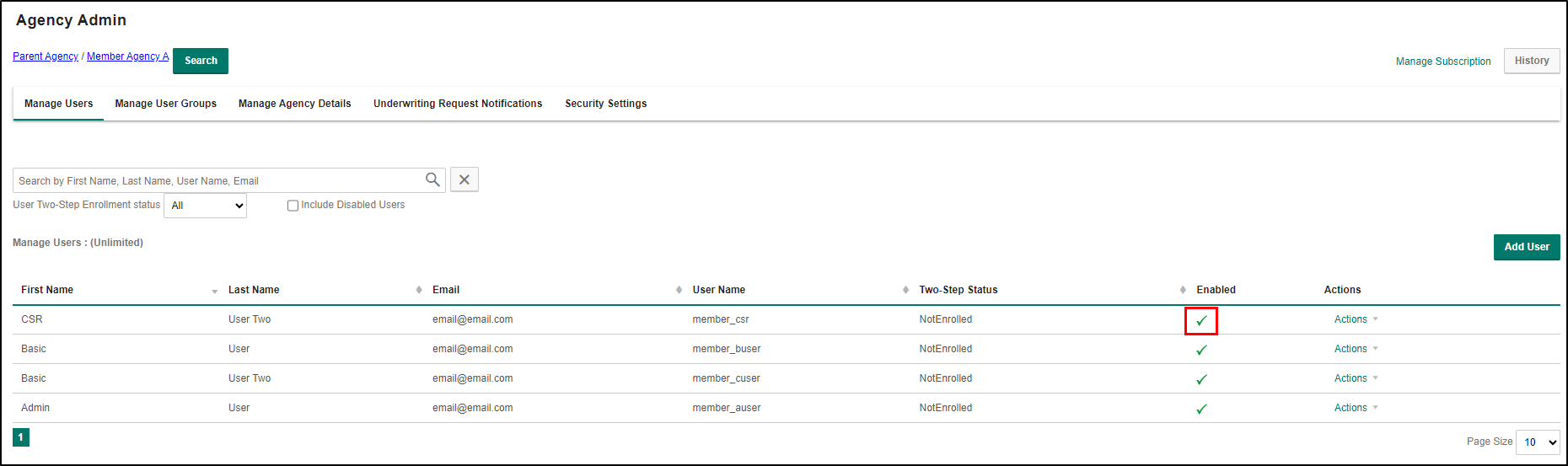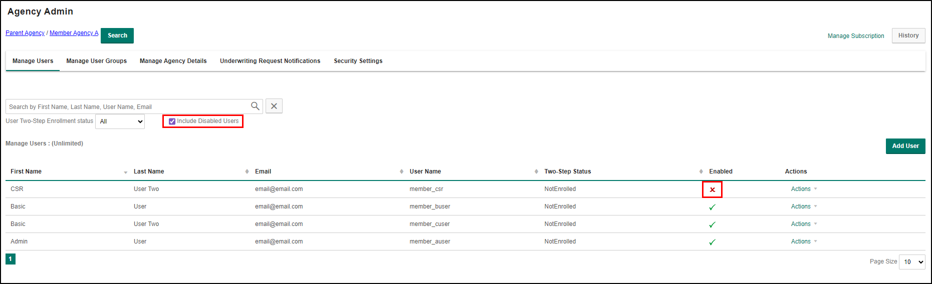 Sometimes it's necessary to enable a user account that was previously disabled. Maybe the member agent left and then came back later, or maybe a user account was disabled by accident.