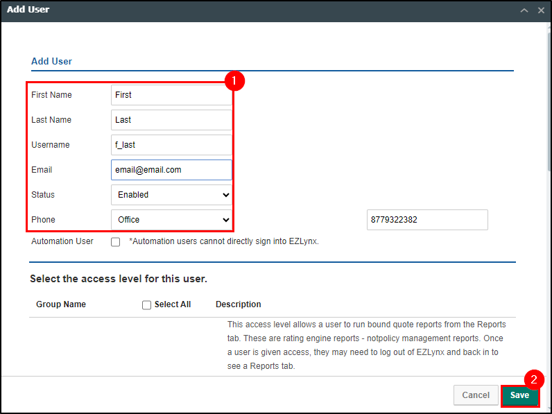 ![]() | Attention! - You do not need to worry about the "Select the access level for this user" section unless otherwise stated in your onboarding process. This feature is dependent on how the AP Main is setup. |