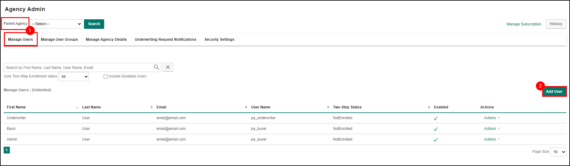 Once you select the Member Agency, the screen will refresh and will show you the list of users at that Member Agency.
