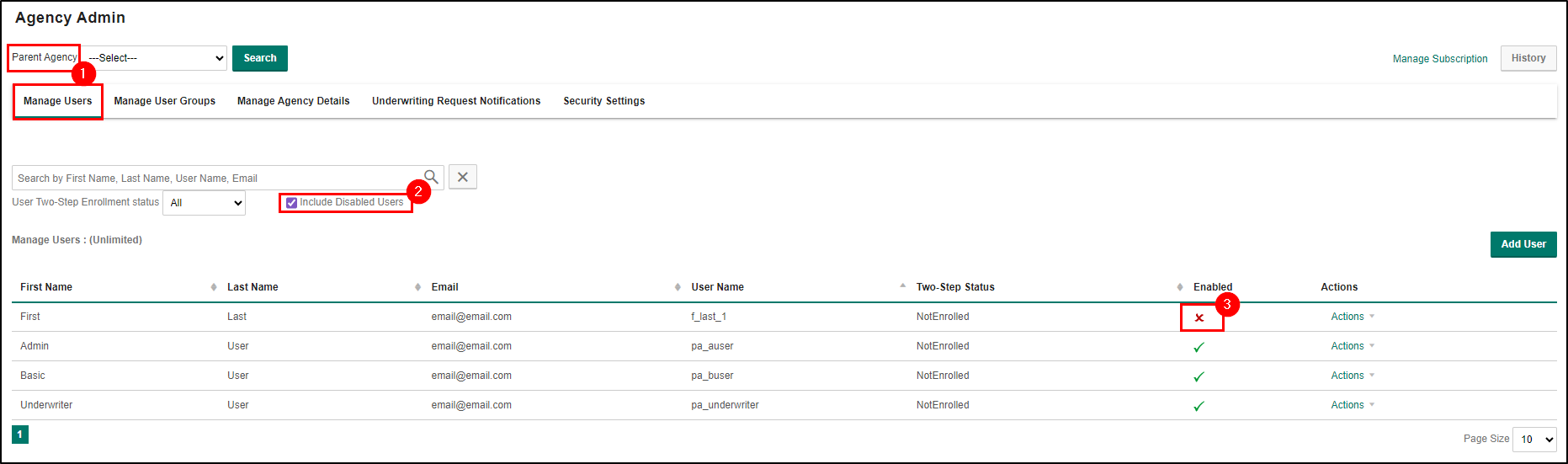 ![]() | Attention! - When a user is disabled, they will no longer be able to access their EZLynx account. However, data from the disabled user and/or agency will still be visible to you (the AP Admin). |