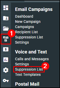 2. Choose the Suppression List option under the Voice and Text category. This will take you to the Text Messaging Suppression List page.