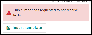 If you try to text a customer's phone number that is on the Text Messaging Suppression List, you will see the following warning message: "This number has requested to not receive texts.