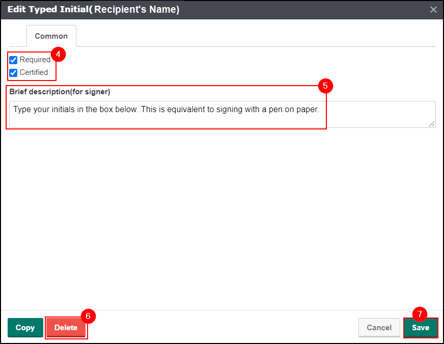 | Typed Initials | Recipients will type their initials using the keyboard |