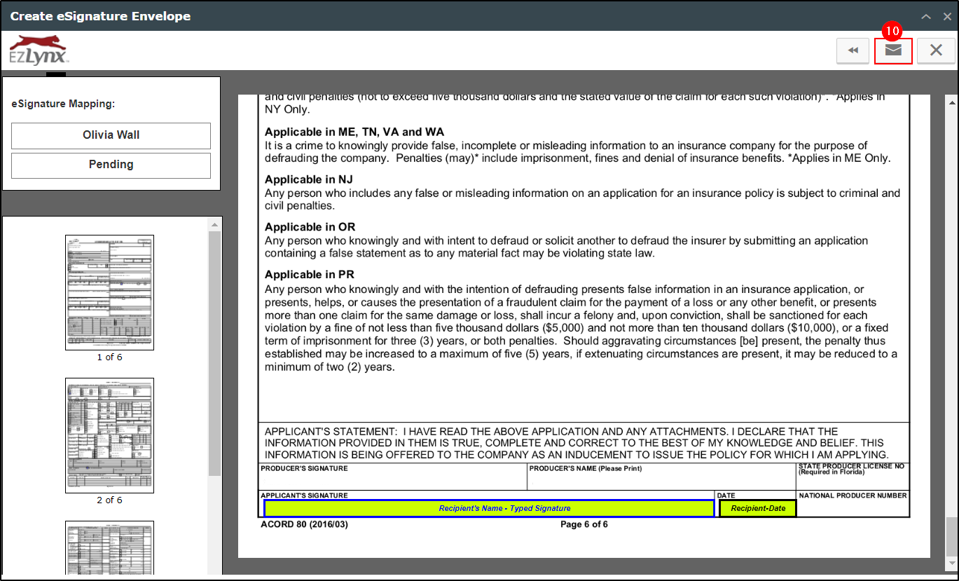 Our eSignature product is a fast and secure way for you to obtain electronic signatures on multiple documents from one or more recipients. EZLynx uses AssureSign for its e-sign product for P&C lines of insurance. AssureSign LLC guarantees full compliance with the requirements and standards of both the E-SIGN Act and the Uniform Electronic Transactions Act (UETA) for all of its products. UETA provides that electronic signatures and records have the same validity and enforce-ability in court as manual signatures and paper-based transactions. Also, using eSignature for any other non-P&C forms violates the terms of use of this product.