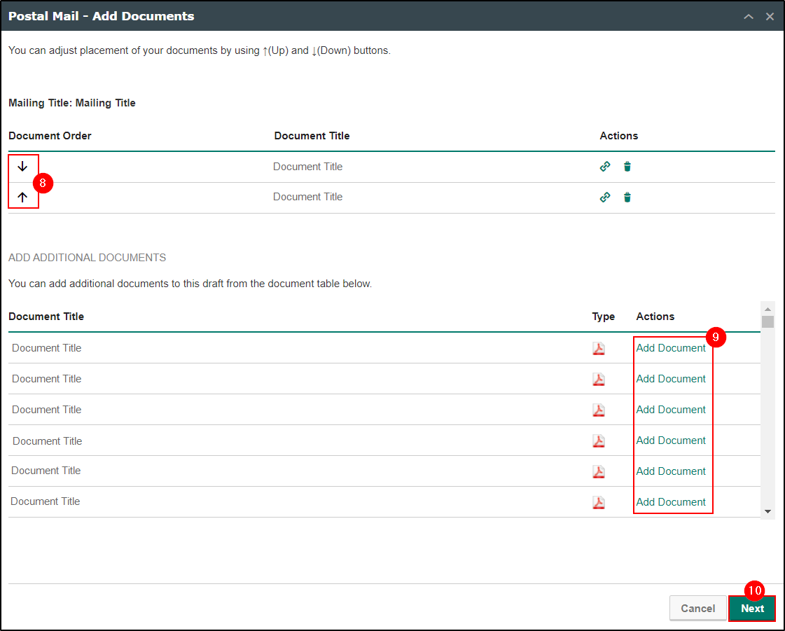 3. Use the Document Type drop-down to select Postal Mail Compatible. You can also filter down by Created By and Shared.