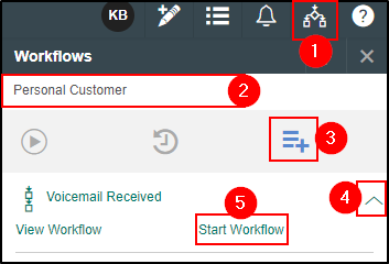 The Workflow Icon allows you to see the workflows associated to a specific customer as well as manual workflows that you have access to trigger whenever necessary.