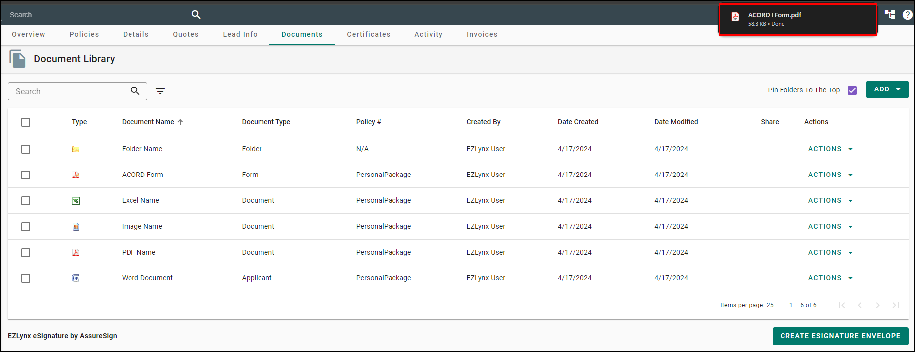 If you experience any issues or error messages when creating eSignature envelopes, the most common issues is caused because it is not a flattened document(s). This mean there is normally security measures around the document keeping EZLynx from being able to place the eSignature boxes. This fix is to flattened or reprint the document(s).