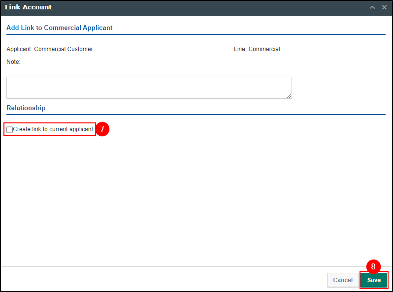 7. Input your notes and check mark the Create link to current applicant so that both accounts have a link to the either.