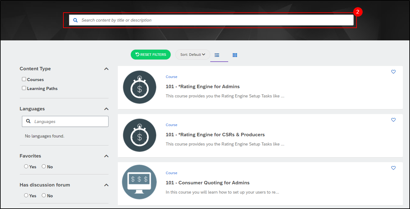 2. From here you can use the search bar to look up courses based on product name, access level, or difficulty.