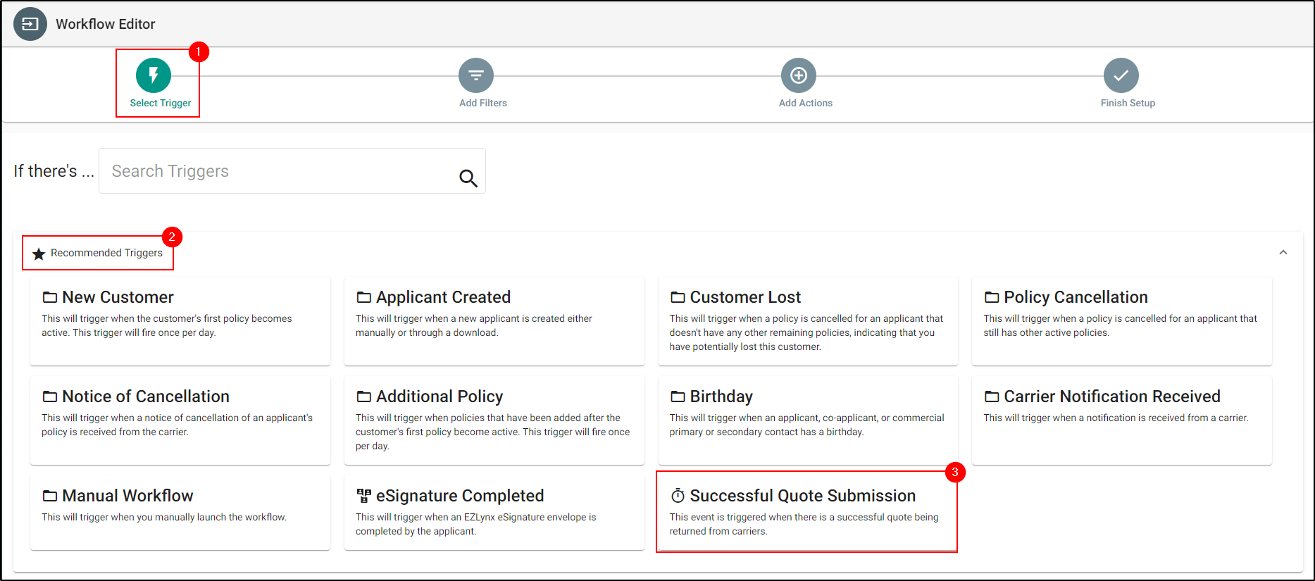 With this release we have added a brand-new trigger in Automation Center - Successful Quote Submission! This new trigger will sent out an automatic email when with quote details like Carrier, Premium and Payment Options to all those applicants that received a successful quote. Currently, the implementation supports - EZLynx, Consumer Portal, and Web Services customers.