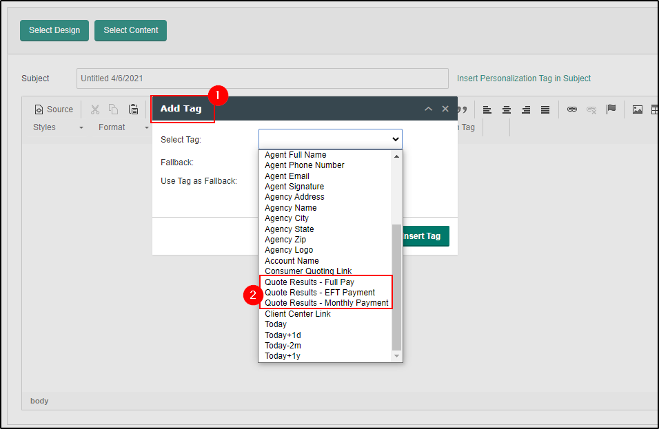 Personalization Tag - Monthly Payment will display successful quotes being submitted and their premiums for monthly payment options in the email body.