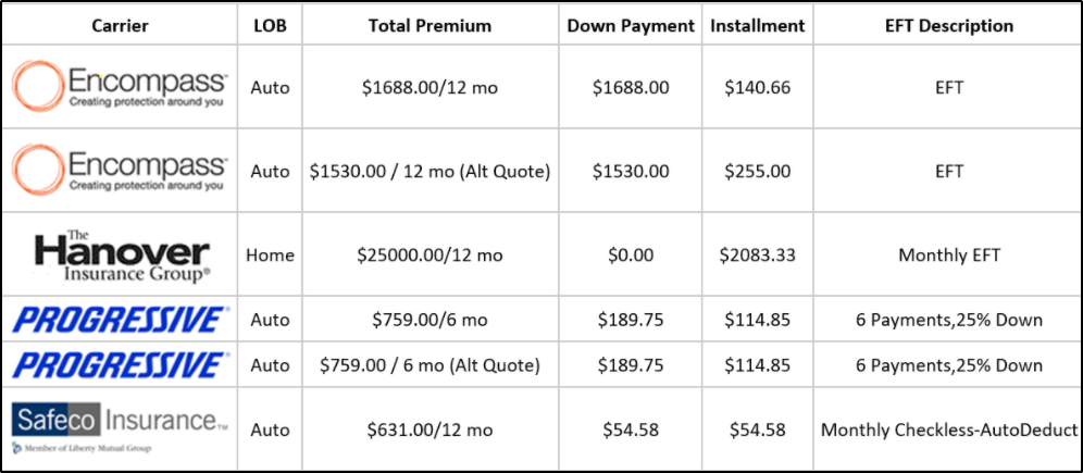 Personalization Tag - EFT Payment will display successful quotes being submitted and their premiums for EFT payment options in the email body.
