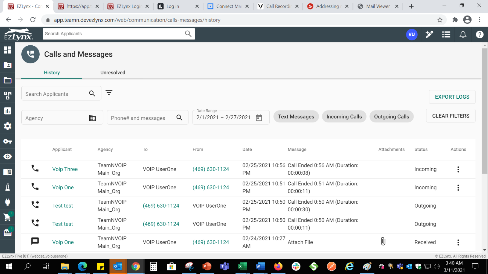 We are excited to announce that with this release, we have updated our Communication Center Calls and Messages pages to give you a consistent, easy-to-use "EZLynx 5" experience. You'll have a simpler view of your text message history and unresolved messages. Also, if you have added your Vonage information through Connect Marketplace, your phone call history will be included so everything is all in one place.