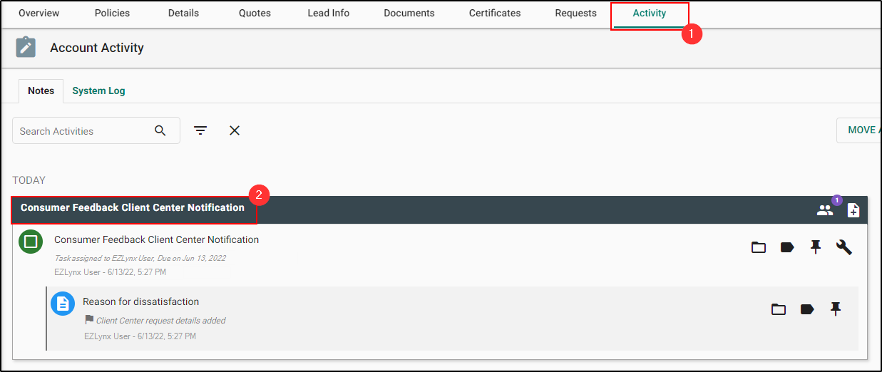 - If a consumer rates a 1, 2, or 3 BUT DOES NOT submit a comment, a task is NOT created as there is not enough additional information provided to create a task. This means that nothing will appear under the Activity Tab if the consumer does not input a comment.