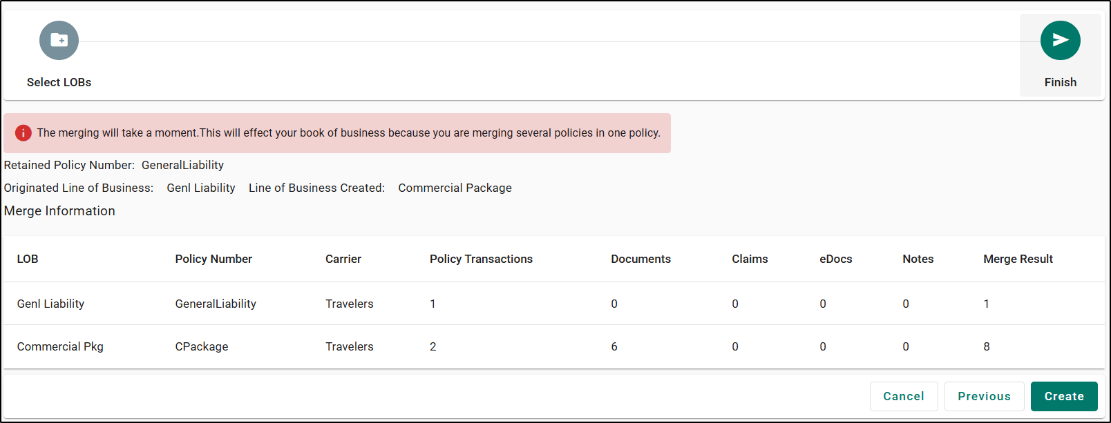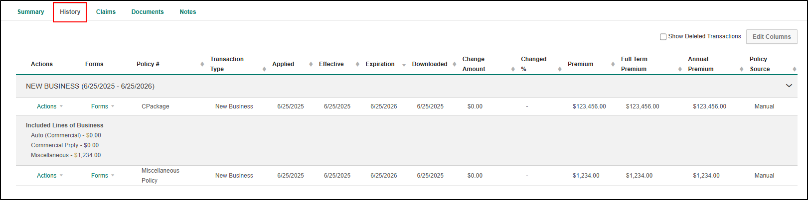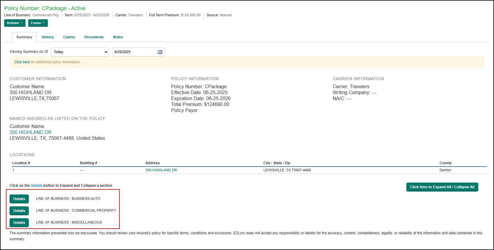 - Line of Business Created - This will be either Commercial or Personal Package depending on the policy types.
