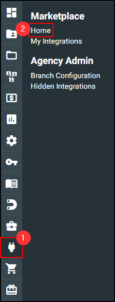 To locate the integration for Fenris in the Connect Marketplace, hover over the Connect Marketplace icon and then click Home.