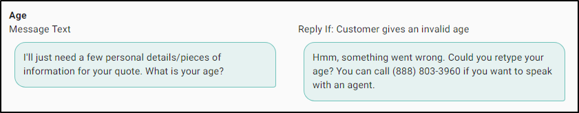 In this section of the article, we will take a look at the Collecting Information step which provides examples of the flow of conversation the AI will have with your customer and what happens when there is an invalid response. We will also cover the Send Quote step which provides examples of the flow of conversation that are sent for quotes along with any follow up messages that may be sent.