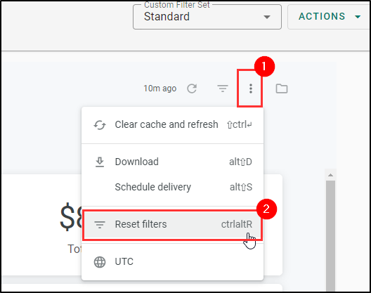 If you want to remove or reset all the filters to their defaults, you can select the three-dot menu button at the top right and choose Reset Filters. Alternatively, you could use the hotkey combination of Ctrl + Alt + R to quickly reset the filters. Resetting the filters will remove any of your inputs and put the filters back into their original state.