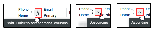 Columns current being sorted will have an arrow icon, making it easy to recognize which columns you've sorted. If you'd like to return to the original order, select the sort arrow again until it returns to its neutral state, or a different column to override the current sorting.