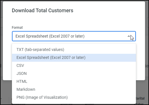 After you have chosen the format and scope, select Download. The system will generate the file containing the data from the individual visual in your chosen format. Download and open the file to access the data.