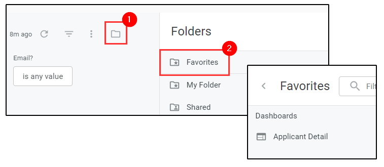 Folder - Within a report, select the Folder icon on the top-right. This will open a menu pane on the right. Choose Favorites to see a list of your favorites. This is a quick easy way to navigate between your favorited reports.
