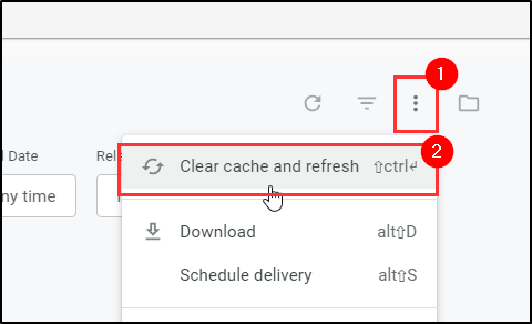 2. Choose Clear cache and refresh. This will clear any cached data for this specific report and refresh it with the latest data if updates were available in the cloud.