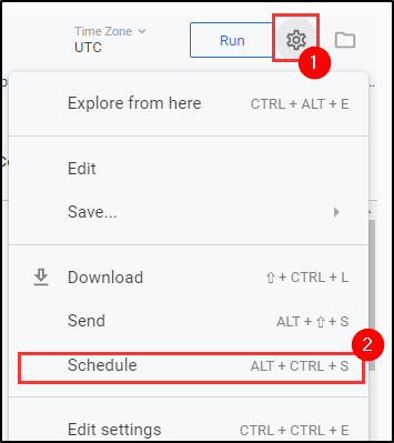 6. On the refreshed page, select the cog icon again and choose Schedule.