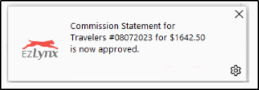 During this period, the statement will be disabled, and no further updates can be made until the process is complete. You do not need to stay on the Commission Statement page while the statement is being processed, you have the ability to navigate through other areas of EZLynx. We’ll keep you updated with the status using the following new features: