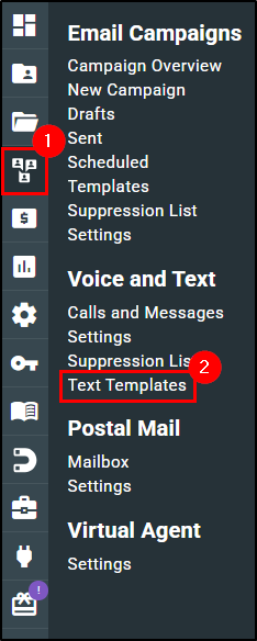 - Choose Text Templates. This will take you to the Text Templates page.