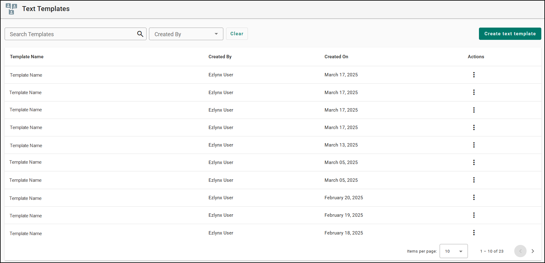- You can use the Created By dropdown to filter the template table to show only templates created by that person.