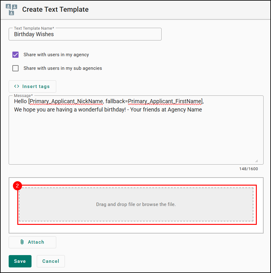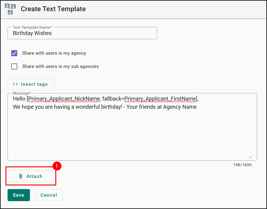 3. Check the respective box if this template should be shared with others at your agency and/or sub-agencies (branches).