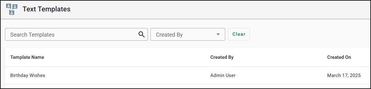 Once you are happy with your text template make sure to select the Save button at the bottom. This will refresh your screen and take you back to the Text Templates page where you can see the new text template you created.