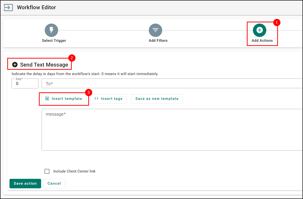 2. Choose the Send Text Message action.