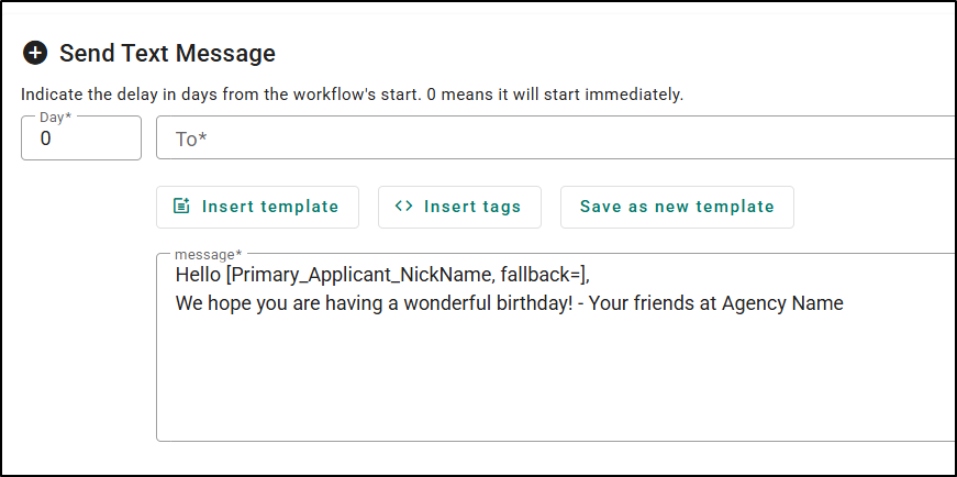 Click here for a list of supported Text Template Personalization Tags!