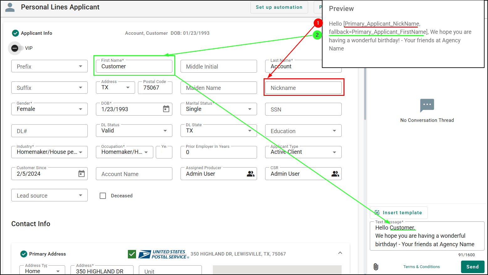 Click here for a list of supported Text Template Personalization Tags!