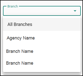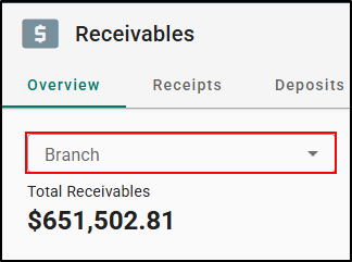 Above the Total Receivables is a Branch filter which allows you to see the Receivables for a specific location. Please note, this filter is only visible to agencies that have branches.