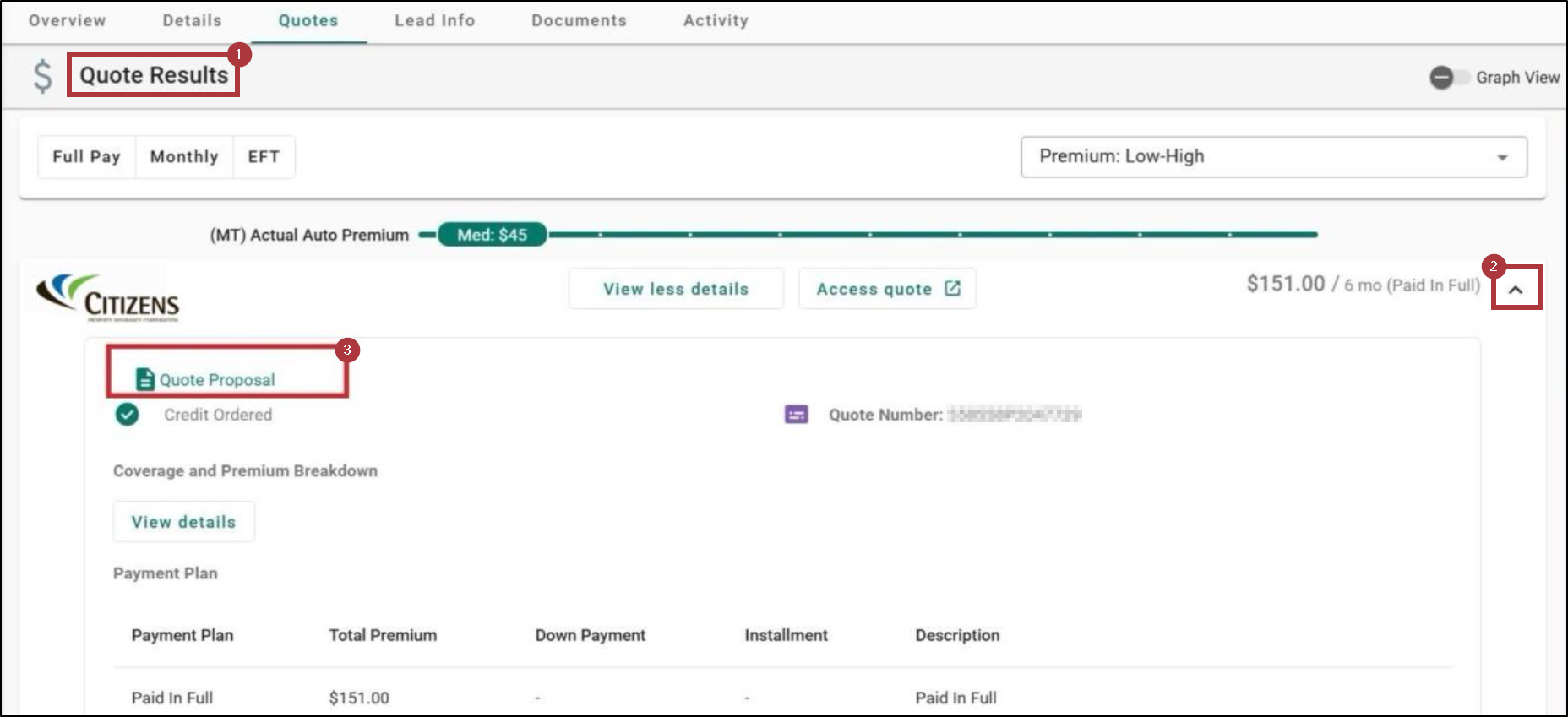 You will be able to see the Quote Proposal link when you expand the Citizens quote result on the Quote Results page. The link will be available in both standard and graph views. Clicking the Quote Proposal link will open the Citizens Quick Quote document in a new browser tab.