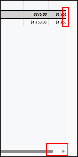 On the table itself, each grouping as a grey subtotal bar. At the bottom of the table is the Total bar. If some of the table is cut off you can use the side scroll bar at the bottom of the page to move the table left and right for better visibility.
