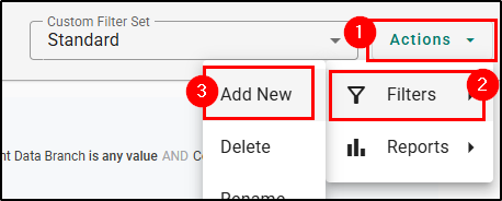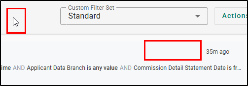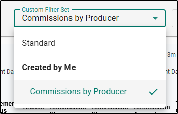 Now you'll be able to see your custom filter set under the Custom Filter Set dropdown next to the Actions button. If you ever want to go back to the default Commissions Grouping report simply apply the Standard filter set.