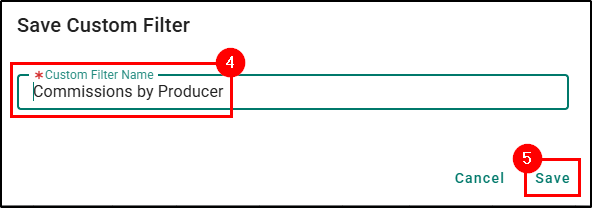 To save a custom filter set for the Commission Grouping Report: