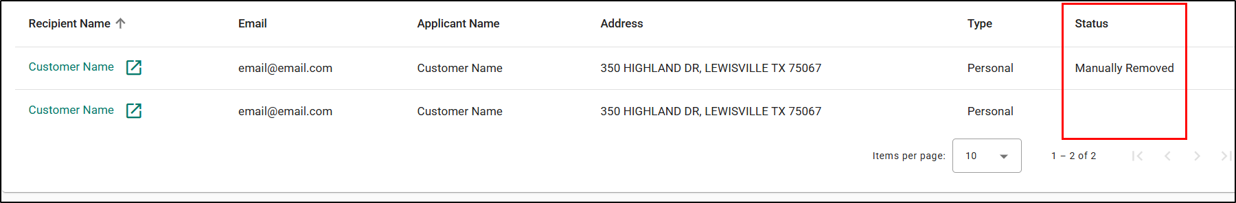 - A new Status column has been added to the recipient list view. Displays “Manually Removed” for recipients removed by the agent.