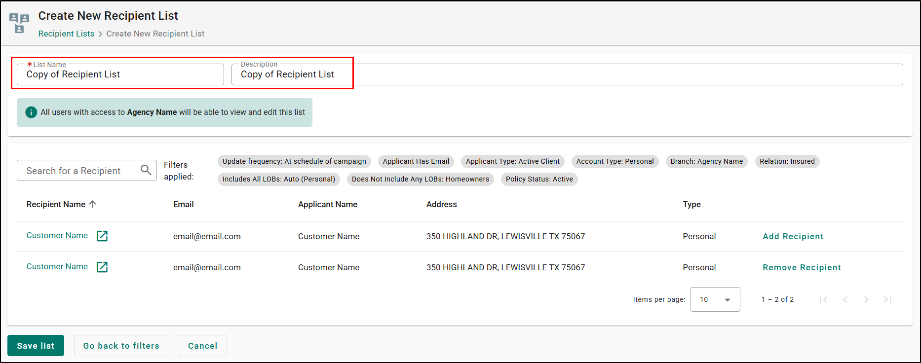 - When copying a recipient list, any manually removed recipients are preserved in the copied list.