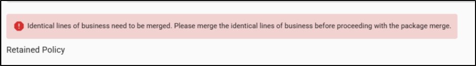 - You will see the error: “Identical line of business needs to be merged.”