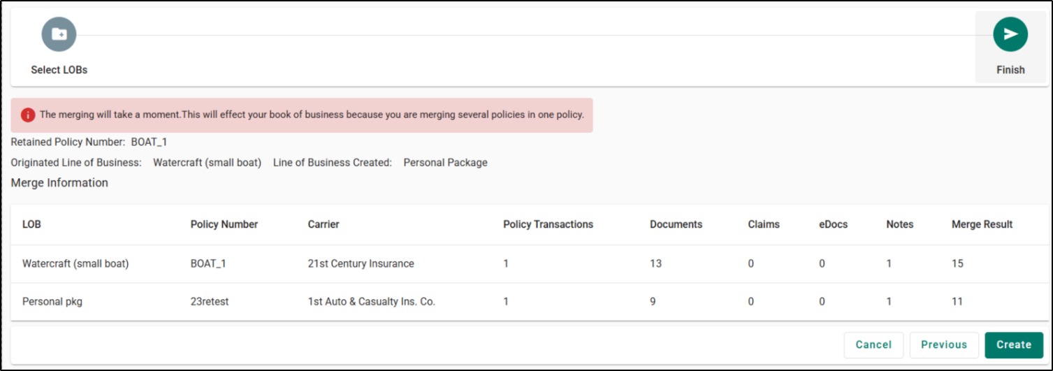 - Line of Business Created (“Commercial/Personal Package”).