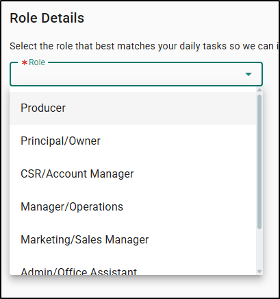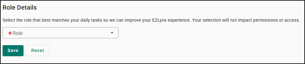 - Selecting your role helps EZLynx better understand how you use the platform, paving the way for more relevant features and communications in the future.
