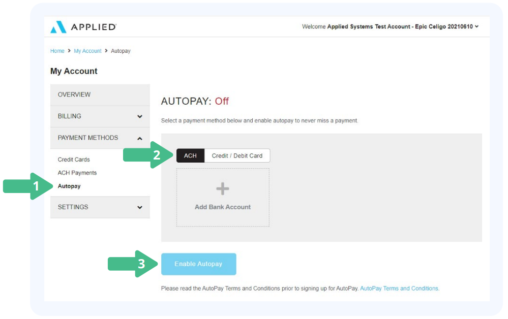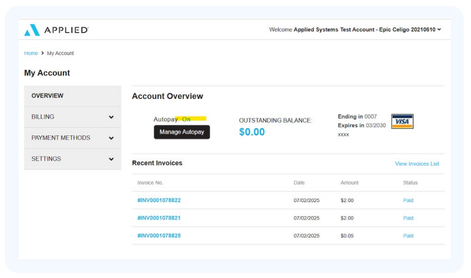 - You can log into your payment portal https://billing.appliedsystems.com/